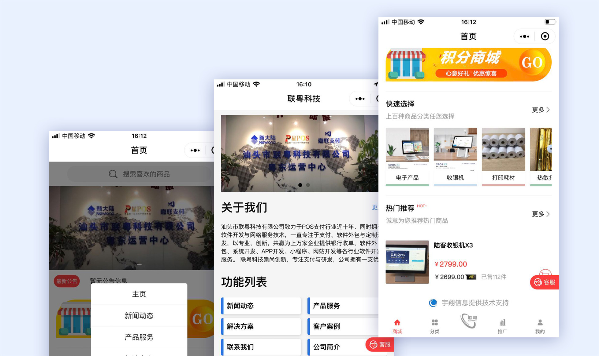 公司簡介:廣東宇翔科技有限公司是一家產業互聯網技術開發綜合服務商,服務范圍涵蓋互聯網產品設計、移動平臺服務、系統集成、智慧工程、物聯網、大數據以及企業信息化等領域。依托移動互聯網、物聯網、大數據、人工智能等技術,致力于為傳統企業提供一站式產業互聯網技術解決方案,助力更多傳統企業完成轉型升級。        作為國家高新技術企業,宇翔科技以“高質量交付、高標準要求”的服務理念,為各行業客戶提供優質服務,致力于為更多傳統企業打造一個“信息共享”、“用戶互通”、“產業互聯”的互聯網服務平臺;